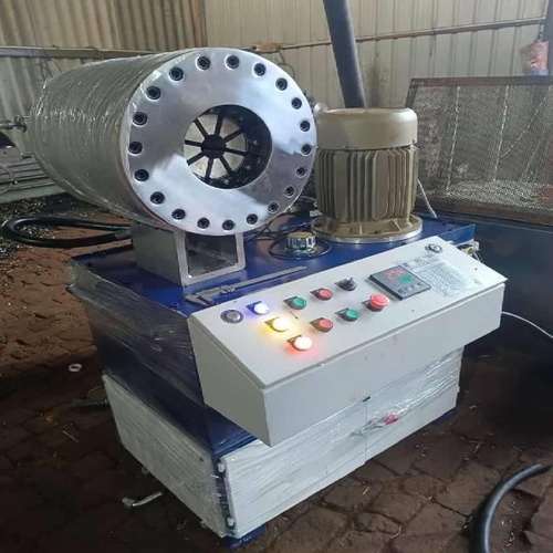 Automated hose crimping machine designed for high-volume production. Offers precise and repeatable crimping for diverse industrial applications. Robust and reliable performance.