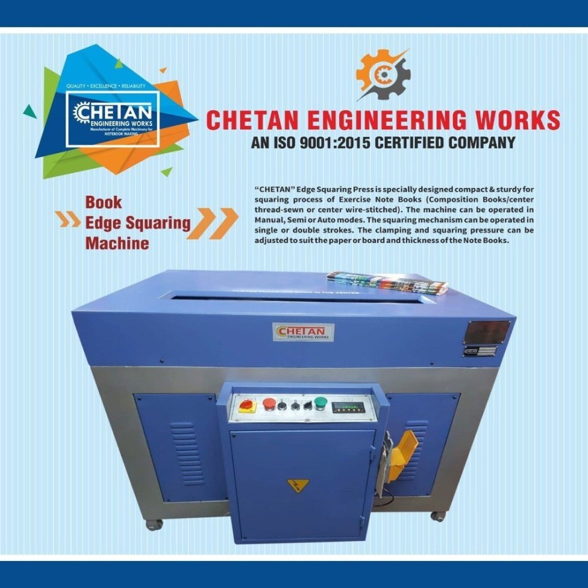 Automatic hydraulic notebook edge squaring machine with 2.2 KVa electric load. Efficiently squares notebook edges for production.