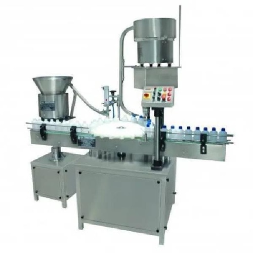 Automatic lug capping equipment made of S.S. Stainless steel. Offers capacity from 30 BPM to 120 BPM with conveyor height adjustable from 850-900mm.