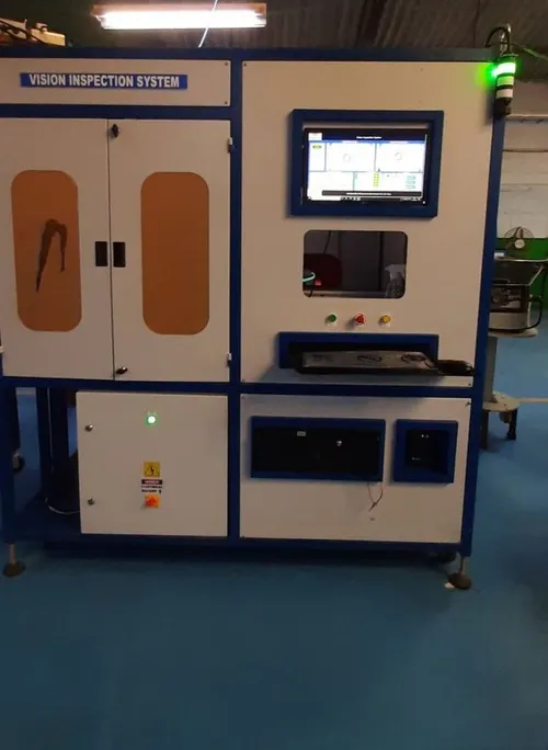 Automated machine vision equipment for high-speed inspection. Achieves 5 inspections per minute with adjustable camera configurations and size based on application. Supplied with 230VAC.