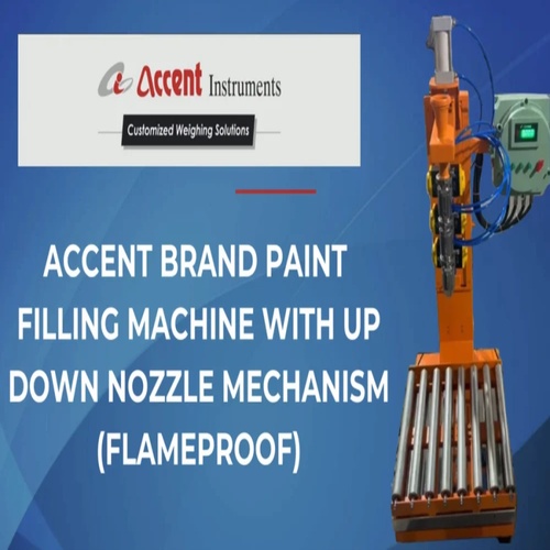 Electric driven paint filling machine from India. Features a 3-stage filling process (Fast, Medium, Micro) with a single nozzle and 1-year warranty. Designed for efficient paint dispensing.