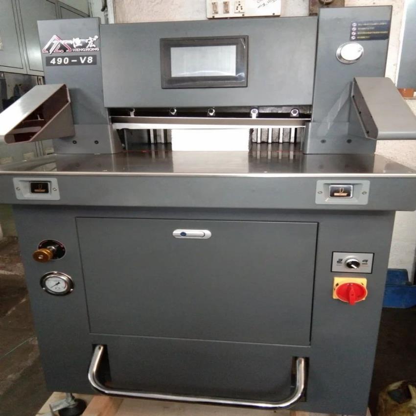 Hydraulic paper cutting machine with 24-inch cutter size, achieving over 100 cuts per minute. Features LCD display and high precision accuracy. Built with a durable iron base plate.