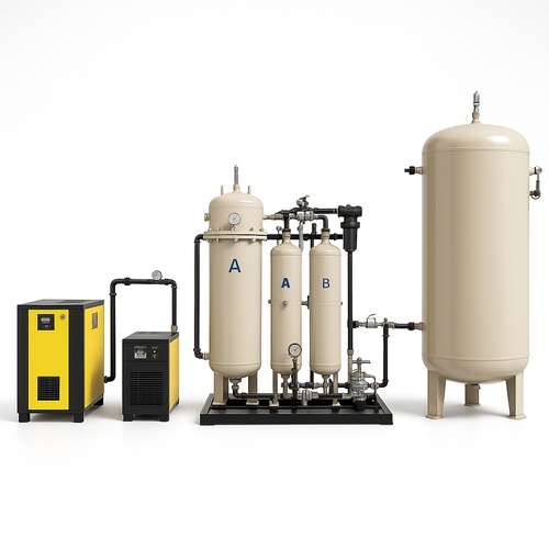 Automatic PSA Nitrogen Generator Machine for medical applications. Features 1.25 Kg capacity and 50 kgf/cm pressure. Nitrogen gas production with advanced automation.