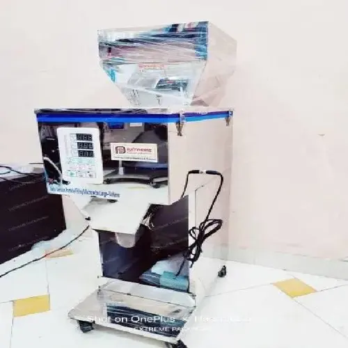 Electric driven automatic tea filling equipment with digital display. Weighs 10-999 Gm with 0.5-+ accuracy. Compact 3x3x5 feet size, 350W power.