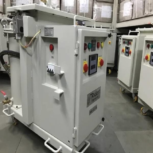 Automatic turbine oil cleaning machine made of stainless steel. Features up to 20 Lpm flow rate and operates on up to 220V. Weighs 350-750 kg.
