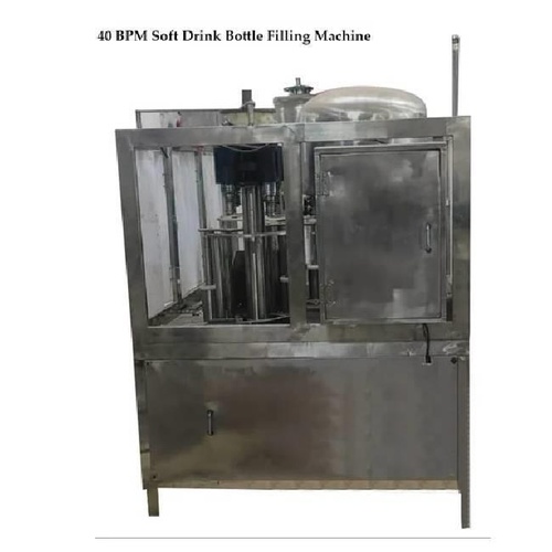 Automatic industrial soft drink bottle filling machine with a 40 BPM capacity. Constructed from mild steel, it operates on 260V and is designed for soft drink storage.