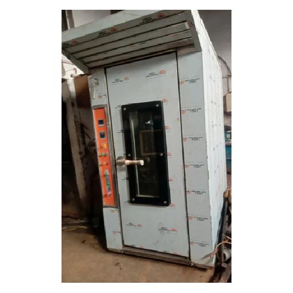 Automatic 72-tray rotary oven for bakery applications. Features stainless steel construction, digital display, and a maximum temperature of 350°C for efficient baking.
