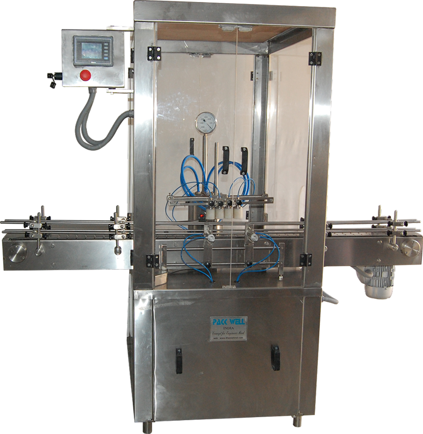 Left-to-right moving automatic bottle cleaning device. Output 2000-2500/hour with 3 HP air consumption. 300 kg working height. Made in India.