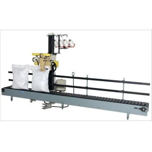 Automatic bag closing equipment with SS & MS construction. Features variable speed, 2 HP 3-phase motor, and available in lengths from 1-60 ft. Widths up to 400mm.