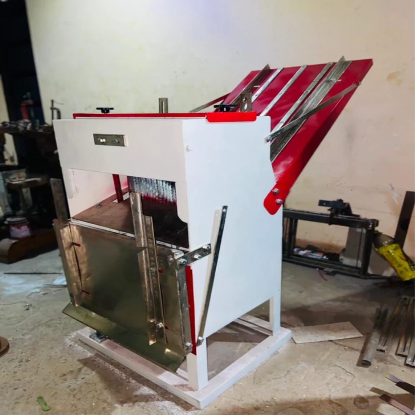 Semi-automatic stainless steel bread slicer for bakery use. Features 12mm max cutting thickness, 1000W wattage, and 50 kg/hr production capacity.