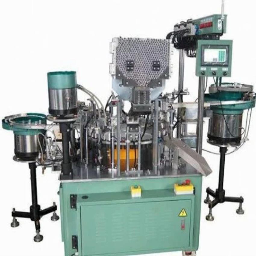 Automatic ball pen fabrication machine constructed from mild steel. Operates on single phase power for efficient production.