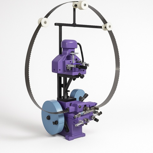 Automatic band saw blade sharpener for mild steel. Operates on single & three phase, 50-60 Hz frequency. Includes 1-year warranty.