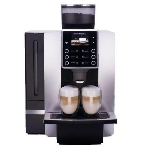 Automatic bean-to-cup, espresso, and cappuccino machine. Stainless steel, semi-automatic operation in black. Capacities: 200-500, 50-100, or 100-200 cups per day.