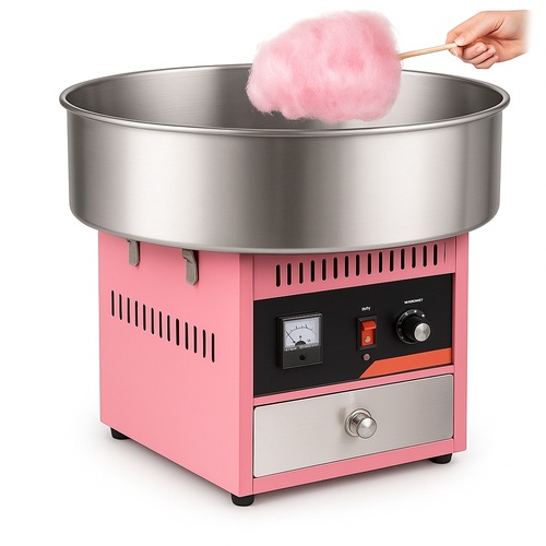 Automatic candy floss equipment with 9 kg/hr capacity. Suitable for new production. High-efficiency operation for creating fine candy floss.
