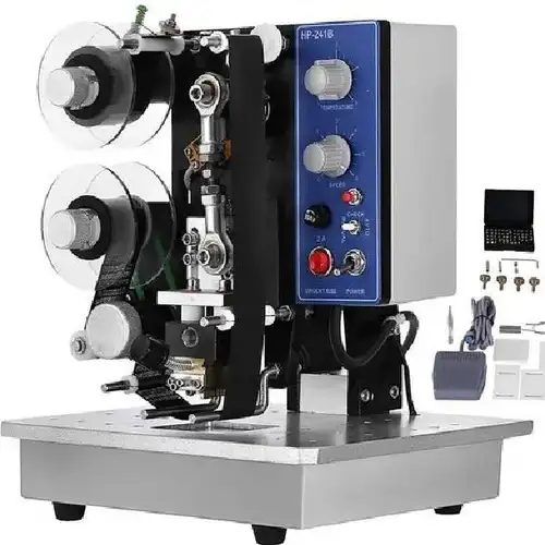 Automatic coding machine capable of printing Arabic numbers and English letters. Operates at 10-100 times/min with 110V and 200W power. Rotation speed of 140 turns/min.