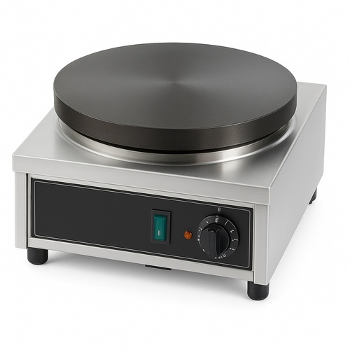Automatic crepe machine with 2.2 kW power, 220V, 50Hz. Dimensions 450x450x180 mm. Designed for efficient and consistent crepe production.