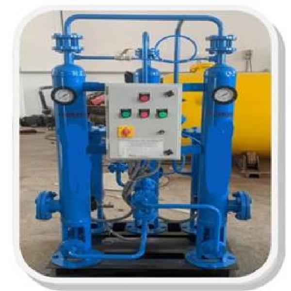 Automatic desiccant air dryer made of mild steel. Operates on 220V, 50 Hz, electric power, three phase. Features a minimum output dew point of -40 C.