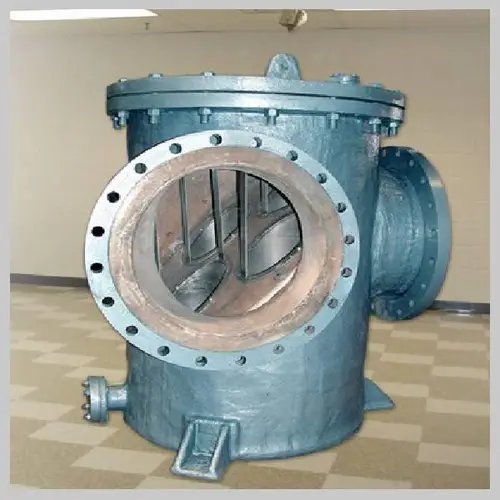 Industrial duplex basket strainer for chemical filtration. Available in sizes 1" to 32", constructed from CI, CS, WCB, MS, with activated carbon filter medium. Features paint-coated finish and 240V operation.