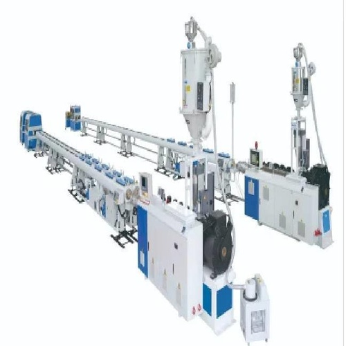 Automatic HDPE pipe plant with 85 kg/hr capacity. Operates on 360V, three-phase power at 50 Hz. Constructed from mild steel.