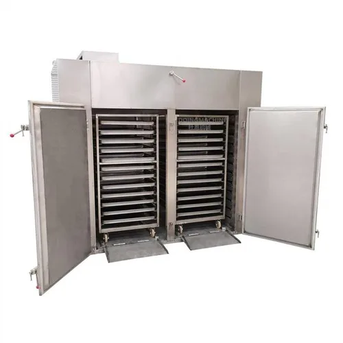 Industrial Hot Air Tray Dryer Machine with Automatic automation grade. Features 24 tray capacity, 315 V voltage, and 1 HP power. Suitable for three-phase operation.