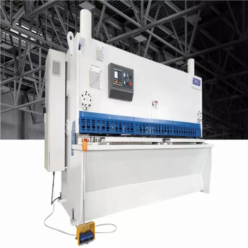 Industrial automatic hydraulic guillotine shear machine, made in India. Features sensor-based control. Comes with a 1-year warranty for new installations.