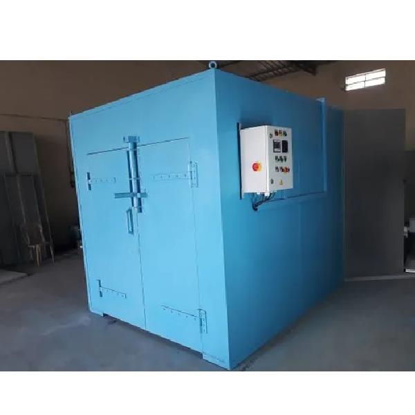 Automatic industrial electric oven with vertical down airflow. Features a 100-250°C temperature range. Designed for efficient material processing in industrial settings.