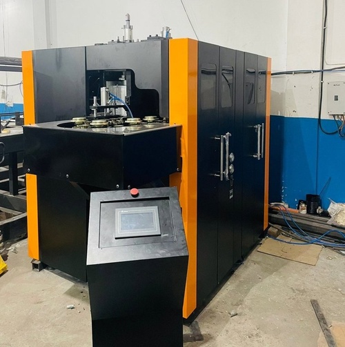 Automatic PET preform blowing moulding machine. Produces over 1000 jars per hour. Operates with 15 HP power consumption. Ideal for high-volume PET jar production.