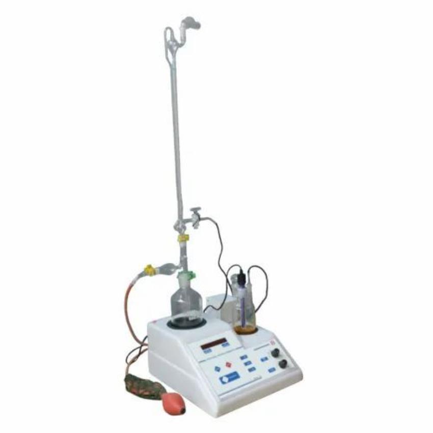 Aluminium Alloy automatic Karl Fischer titrimeter for laboratory use. Features electric power source, 0-200 PPM range, and 0-50°C operating temperature. Made in India.