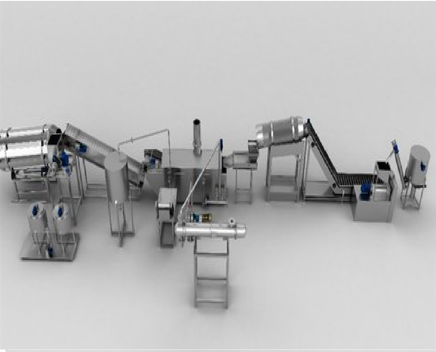 Automatic Kurkure production line, 45 kW, with a 100 Kg/Hr capacity. Features three-phase, 440V, 50 Hz operation, made of stainless steel.