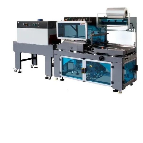 Automatic L bar sealing machine for POF materials. Offers SHRINK packaging with a capacity of 25 units/min. Operates on 440 V. Made in India.