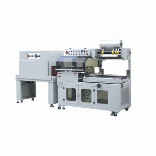 Automatic L sealer shrink chamber machine with 1800 pouch/hour capacity. Mild steel construction, 1.3kW power, single phase, 220V/50Hz. Dimensions: 1850x1000x1600mm.
