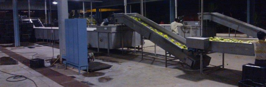 Automatic steam operated mango blanching machine, 2000 kg/hr capacity. Continuous type, SS-304 construction. 3-stage machine type for all fruits & vegetables.