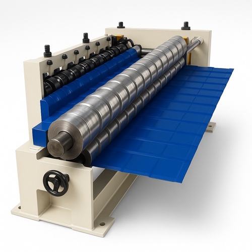 Fully automatic mild steel liner profile sheet making machine. Features 12 forming stages with a capacity of 10-15 tons. Handles job thickness from 0.1-0.5 mm and max sheet width up to 1220 mm.