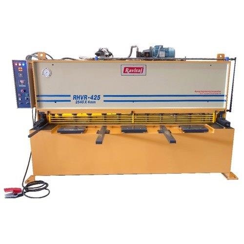 Automatic Hydraulic Shearing Machine for MS sheets, with 4mm MS shearing thickness. 5 HP electric motor, 400/440 V, paint-coated finish.