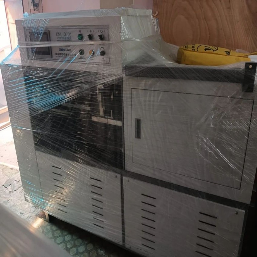 Industrial stainless steel non woven bag sealing machine. Features automatic operation and a production capacity of 15 bags per minute. Suitable for industrial applications.