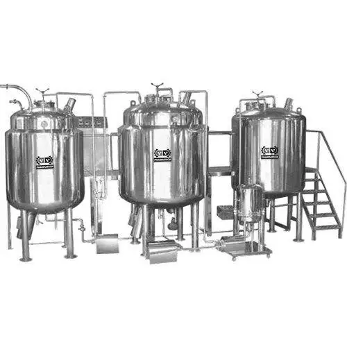 Automatic oral liquid manufacturing machine with SS 316 contact parts. Available capacities from 500 Ltr to 10000 Ltr. Operates on 3-phase power with 60 Hz frequency.