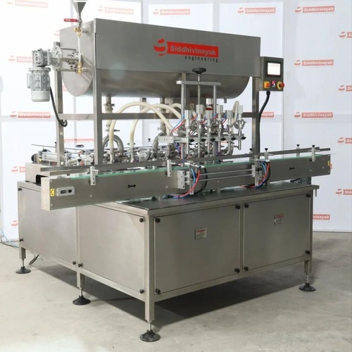 Automatic paste piston filling machine, 2000 pieces/hr capacity. Fills 500ml, 100-1000ml range. Requires 4-6 BAR air pressure. 3 Phase, 2KW power, 7" touch screen.