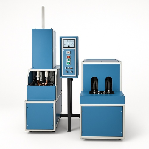 Fully automatic PET bottle blowing machine, 60-100 BPM capacity. Operates on 220-240V, three-phase electric power at 50/60 Hz. Constructed from mild steel.