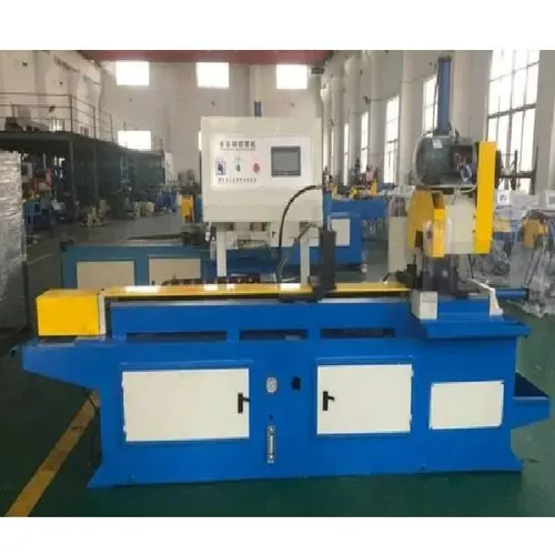 High-capacity automatic pipe cutting equipment. Achieves 350 mpm cutting speed for pipes up to 125mm diameter. Uses 5 HP power with a 250-425mm blade.