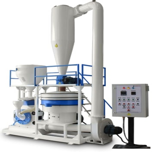 Automatic three-phase electric plastic pulverizer (NMP-300). Features a 300mm disc size, 25-30 HP main motor, and an output of 90-120 kg/hr.
