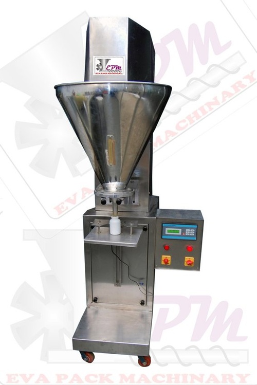 Automatic powder packaging machine, 40 BPH capacity, 280V. Suitable for food packaging applications. Stainless steel construction with 6 CFM compressed air requirement.