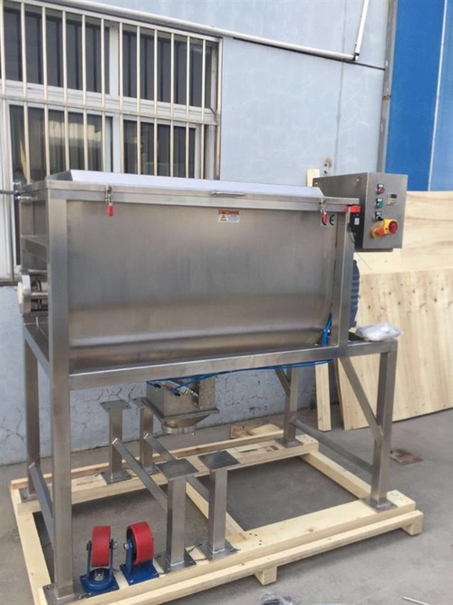 Stainless steel automatic putty mixing machine with 500 kg capacity, operating on 220V single-phase power. Designed for efficient mixing applications. Silver color.