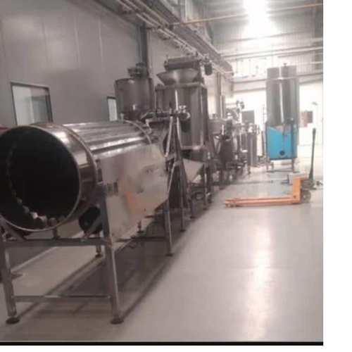 Automatic stainless steel snacks frying line. 15 kW electric, 220V, 50 Hz. Capacity 300 kgs. Features automatic seasoning equipment. Made in India.