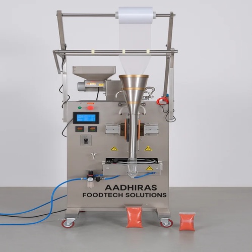 Automatic spice packaging machine for food processing. Features hydraulic drive, 380V, 1.5kw power, and 2500 pouch/hour capacity. Center seal packaging type. In stock.