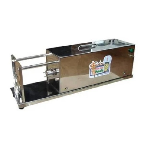 Fully automatic spring potato cutter made of 304 SS. Features digital counter and 90W AC motor (230 or 110 V). Weighs 10.5 kg, dimensions 58x8x8 inches.