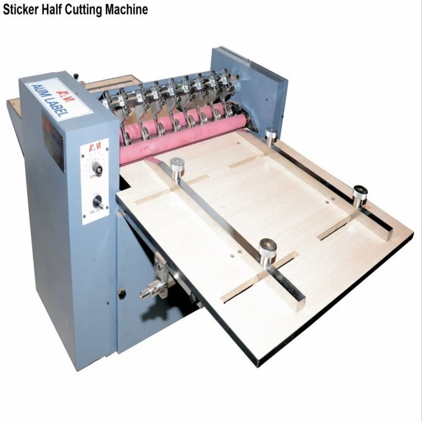 Automatic sticker cutting machine made of MS. Features 1000 pieces/hr output capacity and 125 mm paper width. Operates at 20 Hz frequency. Available in stock.