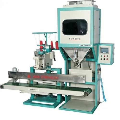 Automatic sugar packing machine with 10-13 bags/minute capacity. Handles 5-50 kg bag weights for industrial sugar applications.
