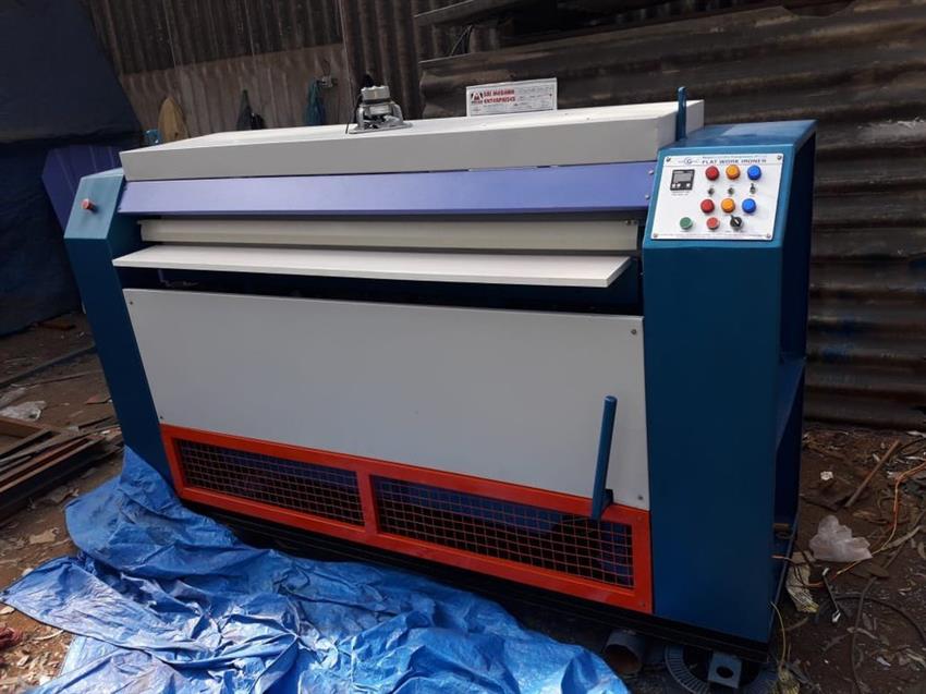 Automatic three-roll calendering machine, model SCMA, made of stainless steel. Single phase, produces 600 sarees per cylinder. 1-year warranty. New and second-hand available.