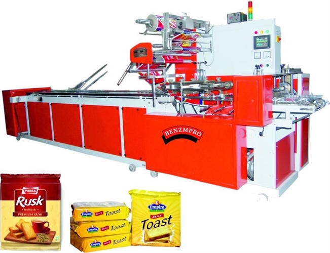 Semi-automatic electric flow wrap machine for toast packaging. 1 Ton capacity, 16x4x6 dimensions, 440V power. New condition.