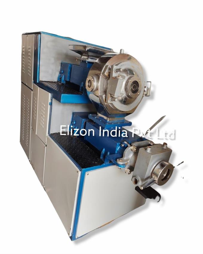 Automatic three-phase toilet soap plodder machine. Mild Steel construction, 3 HP power, with a capacity of 100 kg/hour.